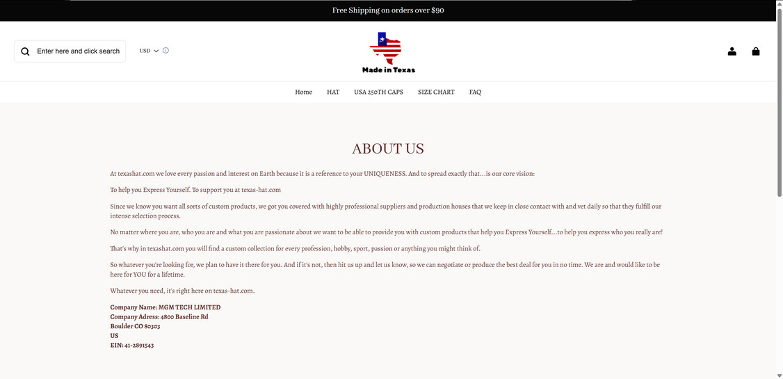 Texas-hat.com does not clearly identify who operates the business. When a site hides ownership, company registration details, and accountable leadership, it is a strong sign you should not trust it with payments or personal data.