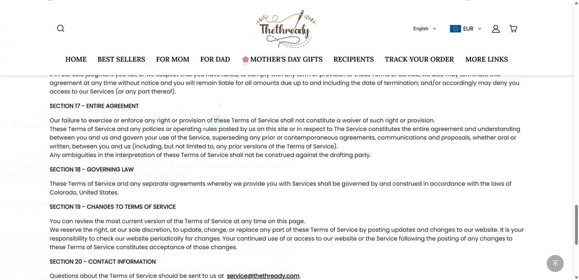 Thethready.com does not provide that level of accountability. In most cases, the only “support” offered is a generic email address and a basic contact form. That is a major red flag because it is easy to ignore, delay, or abandon, leaving buyers with no practical way to resolve non-delivery, wrong items, charge disputes, or refunds.