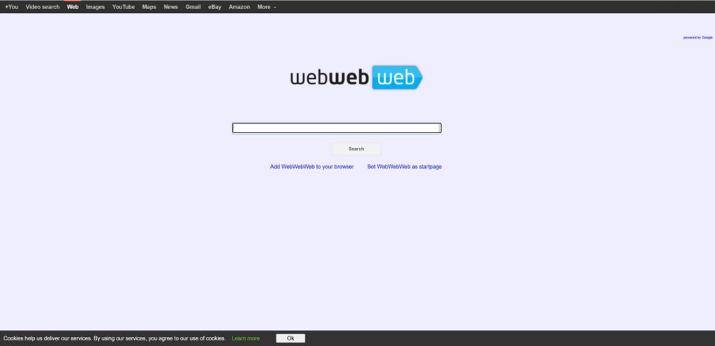 WebWebWeb.com is a search engine that is promoted through the use of malicious browser extensions and browser hijackers. When installed, these browser hijackers modify your web browser’s configuration to automatically send all searches through WebWebWeb.com.