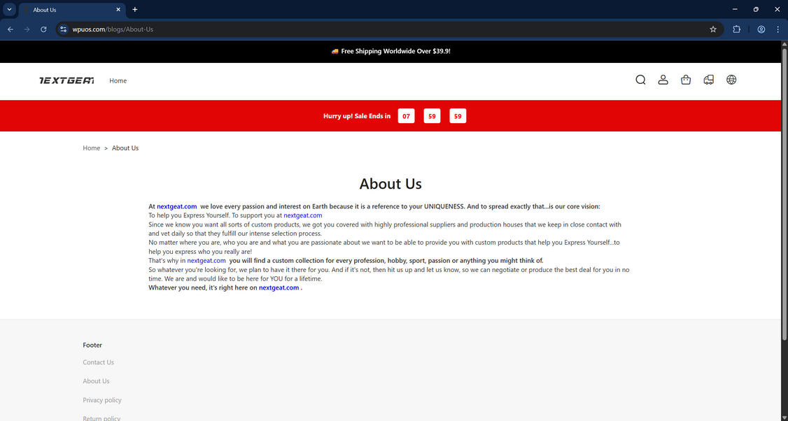 Authentic brands maintain social media pages for customer engagement. Wpuos.com’s total lack of accounts is highly unusual and suspicious.