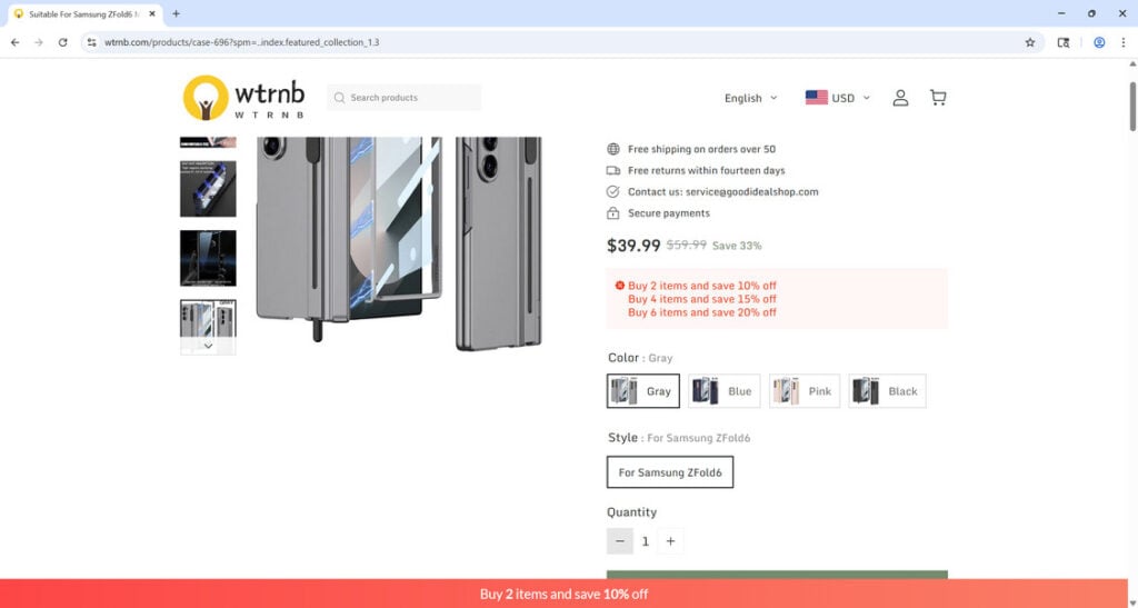 In conclusion, we advise you to stay away from this dishonest website. Do not fall for the attractive discounts that are used to bait you. The product images are not genuine, and the customer service is nonexistent. You can protect yourself by avoiding Wtrnb.com and similar sites.
