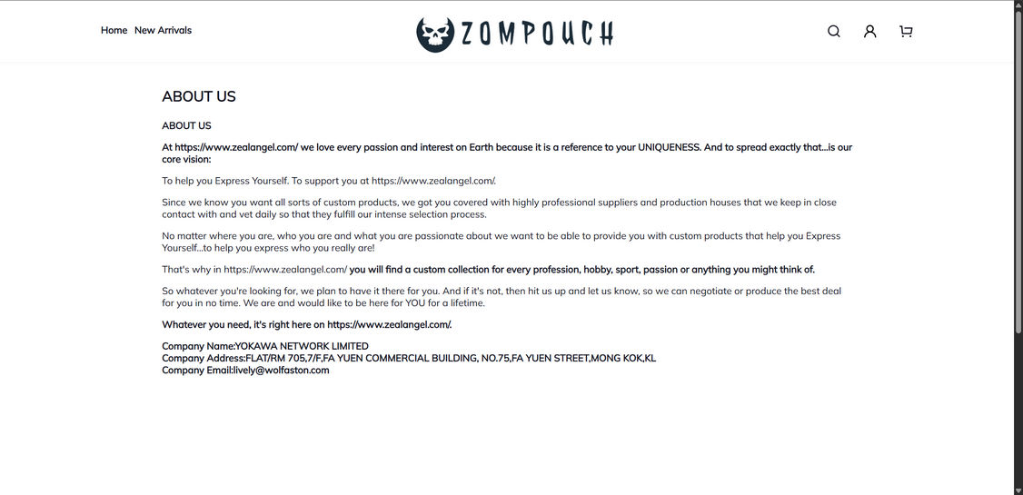 All product info and images are stolen from other major retailers. Zompouch.com lacks any original content showing its illegitimacy.