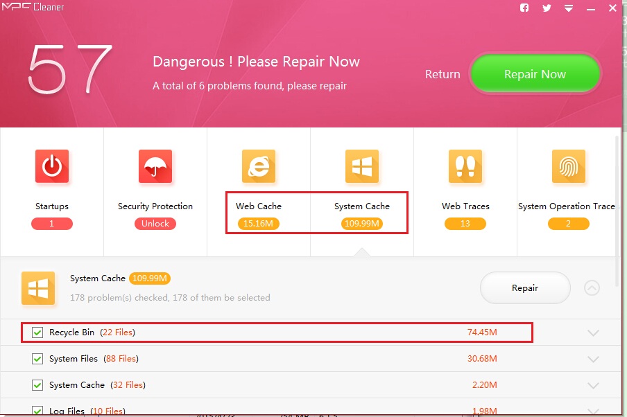 MPC is free for all our users, and free of charge is just one of its strongpoints. It has succinct designs and a friendly user experience: One Click CleanUp, One Click SpeedUp, etc. CCleaner is good software, but maybe it is so professional for users. Moreover, a score will represent the condition of the computer in MPC. This design can bring our users a sense of achievement.