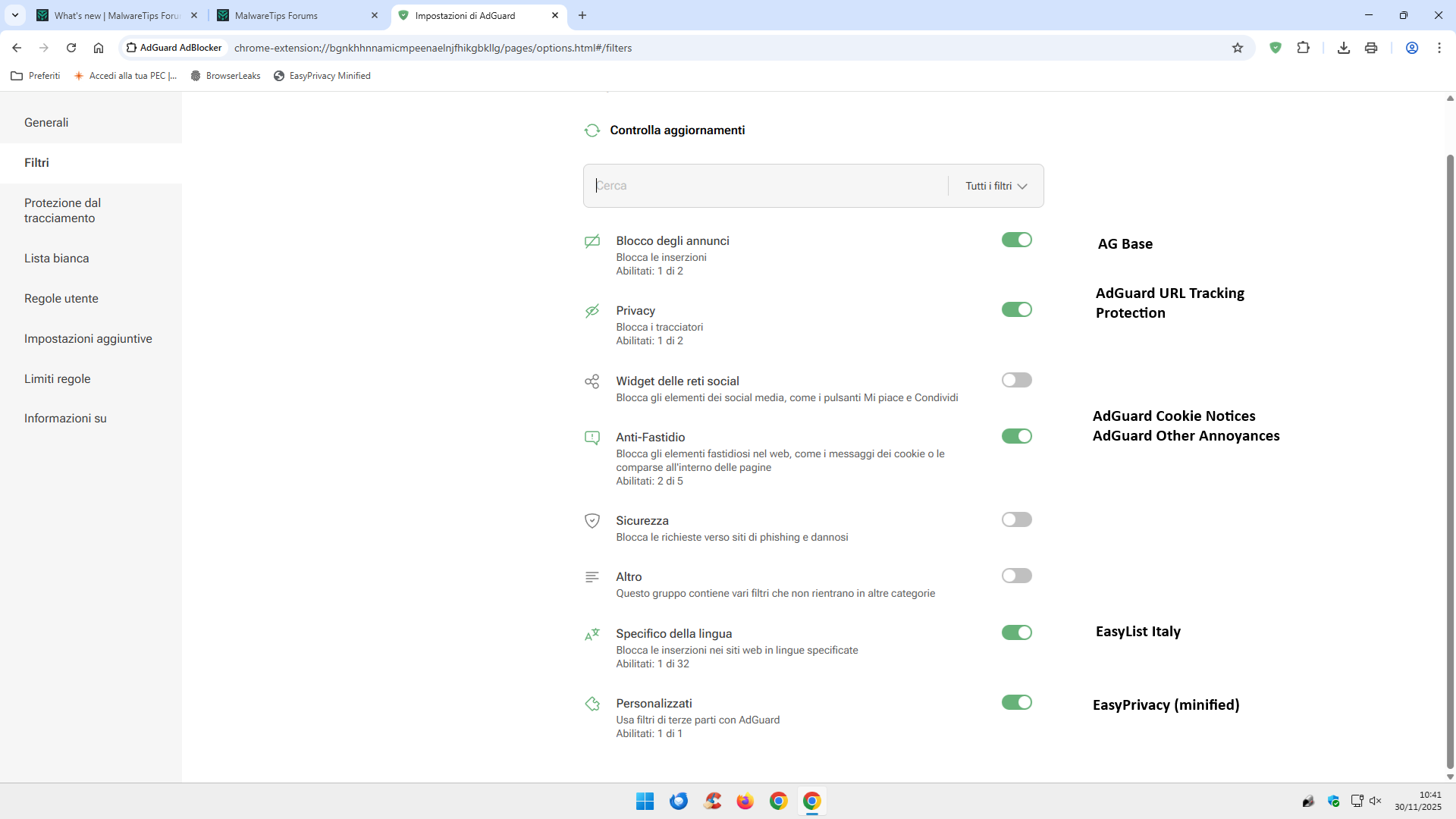 Key features/lists: Everything from Optimal, plus Fanboy's Annoyance/Social lists, AdGuard-specific annoyances, URLHaus malware filters, and more regional/language-based ones. Dynamic filtering is at its peak, enabling things like hard mode for certain domains.
