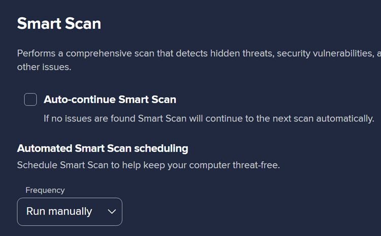 I've never had an issue with the first scan, to see if it was going to recommend anything or 2nd scan found malware. I just keep hitting next and skip. I keep it disabled (last image and Smart Scan in settings), and let the real time protection do it's thing, along with an occasional Quick Scan and running the Software updater once in a while.