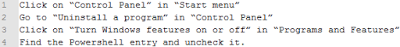 - Disable Powershell. You can do this via Control Panel > Programs > Turn Windows features on or off.