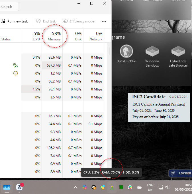 I've noticed a difference in RAM usage values in the Bottleneck app and Task Manager