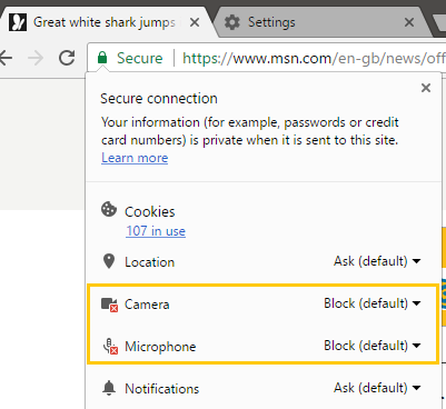 If permission is granted for the website to access the audio and video components, most likely unknowingly as the user tries to dismiss the notification, the website can run JavaScript code that records audio or video content. The content can then be sent over the Internet to the other participants of the stream.