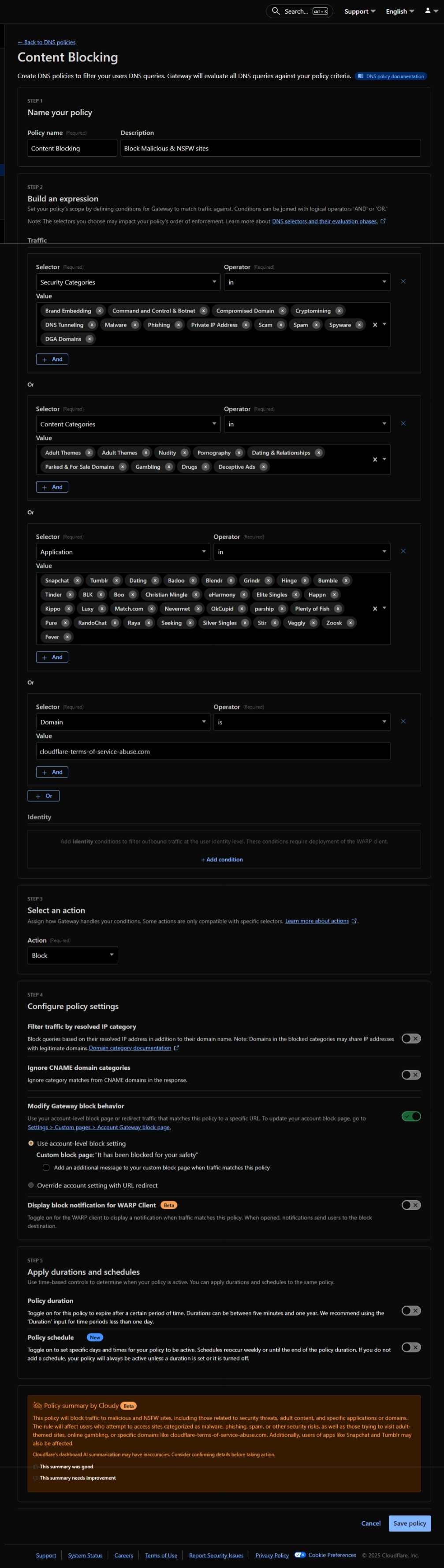 Both. The block page requires Cloudflare certificate installation, which you generate from your Cloudflare Gateway account. You have a default, redirect, or custom block page.Does Cloudflare block DNS requests with 0.0.0.0 IP or it shows their block page for blocked domains?