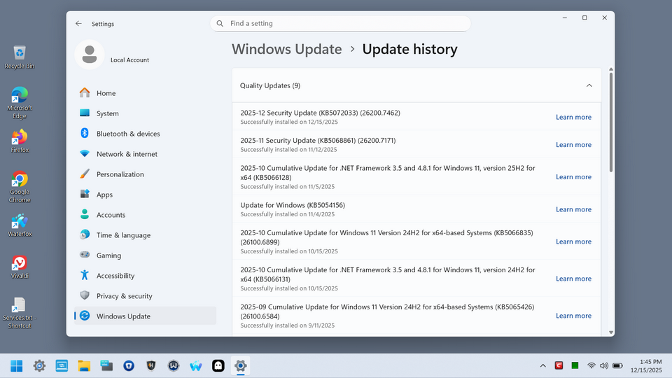 So I restored the VM and configured CF exactly as in the video. Currently, the system is updating: KB5072033 (26200.7462).