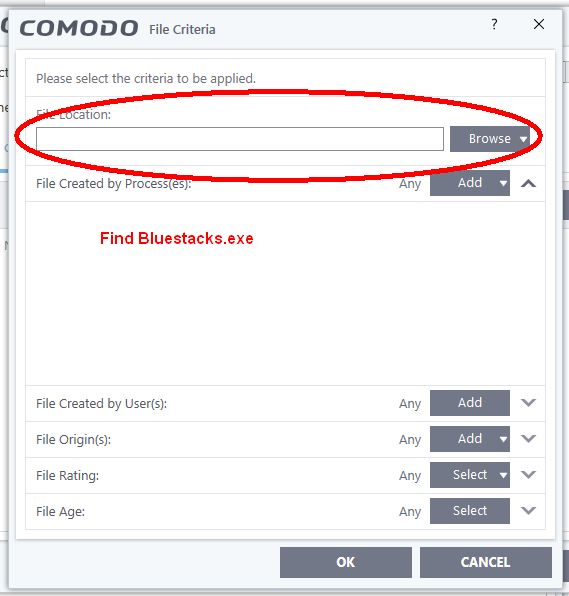 Click OK and exit settings. Try Bluestacks again to see if it is running outside of the container. I think this will fix the problem, but you may need to add a HIPs rule too unless HIPs is off.