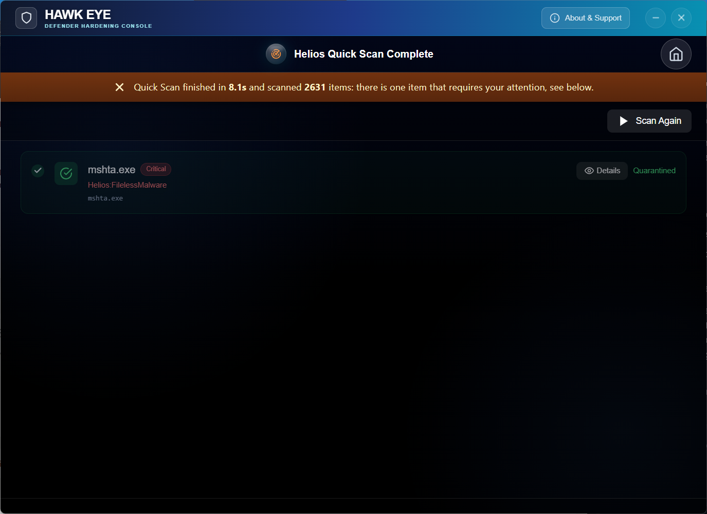 MSHTA appears as an infected file not a victimThis is one of the cases where Helios will help.