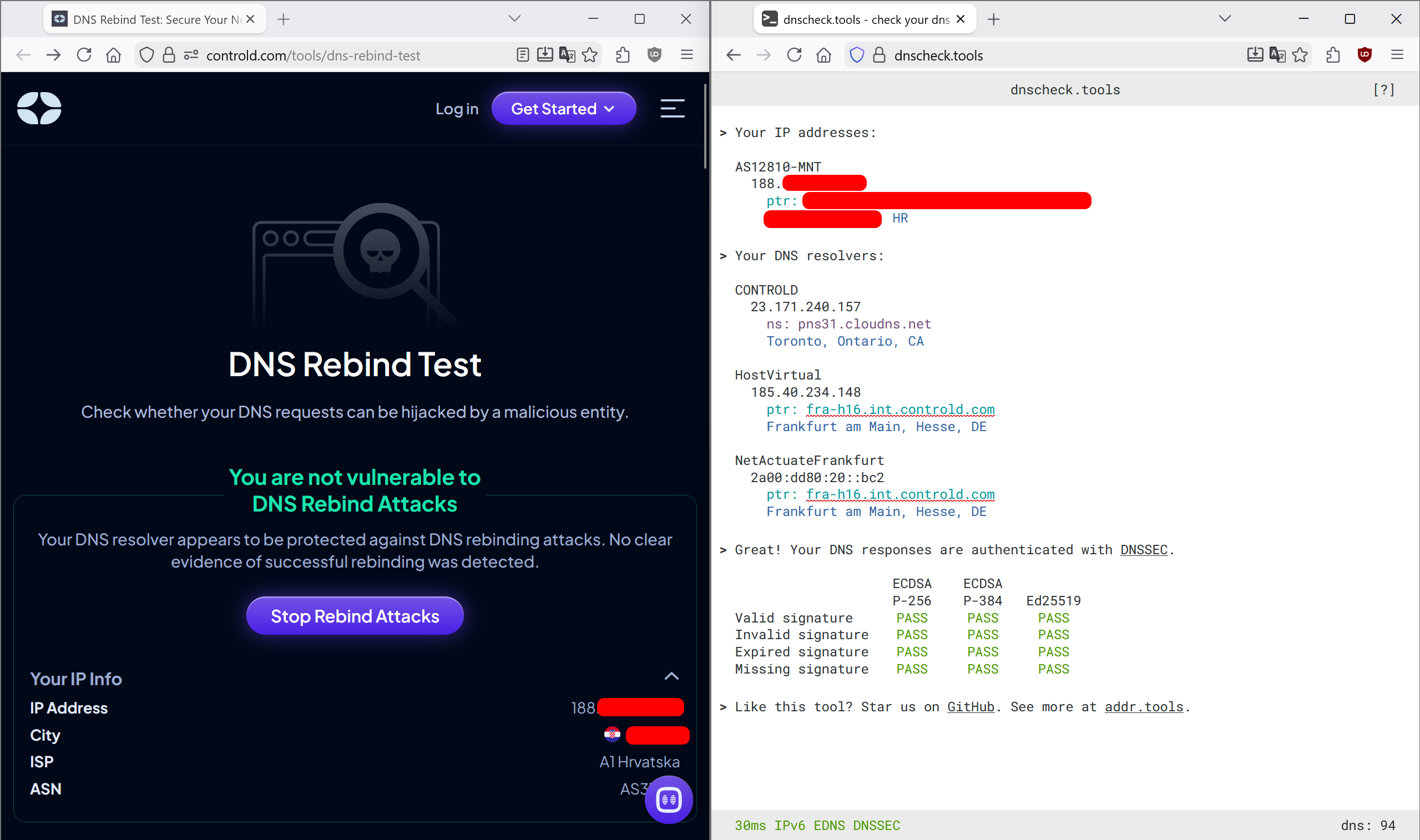ControlD Free DNS (HaGeZi Pro Plus) absolutely passes this test on my PC. I'm connecting through my Asus router (which is behind the NAT of ISP issued router Huawei).ControlD free failed to pass ControlD test; NextDNS and Aguard (with rebinding attack protection enabled in controld or rebinding attack hagezi list included in adguard) pass the test with success.