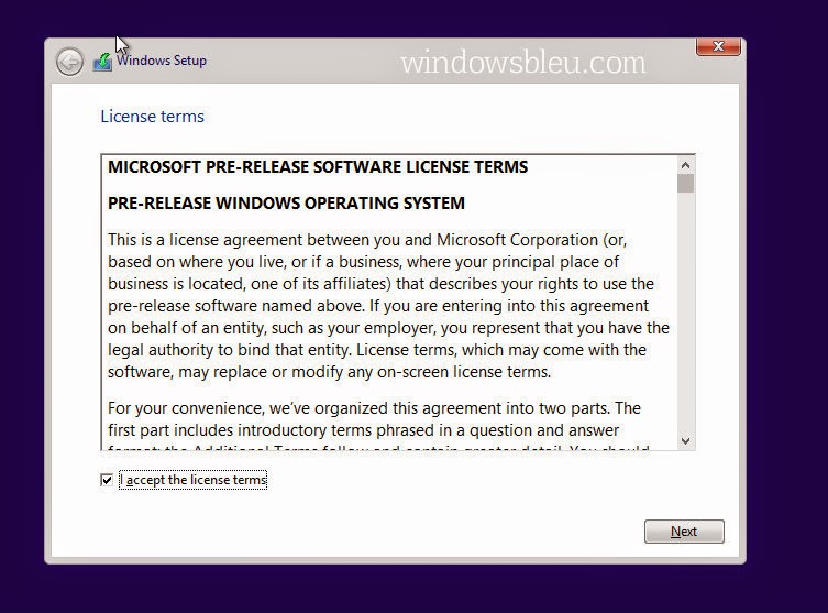 I Accept the license terms." then Click on the "