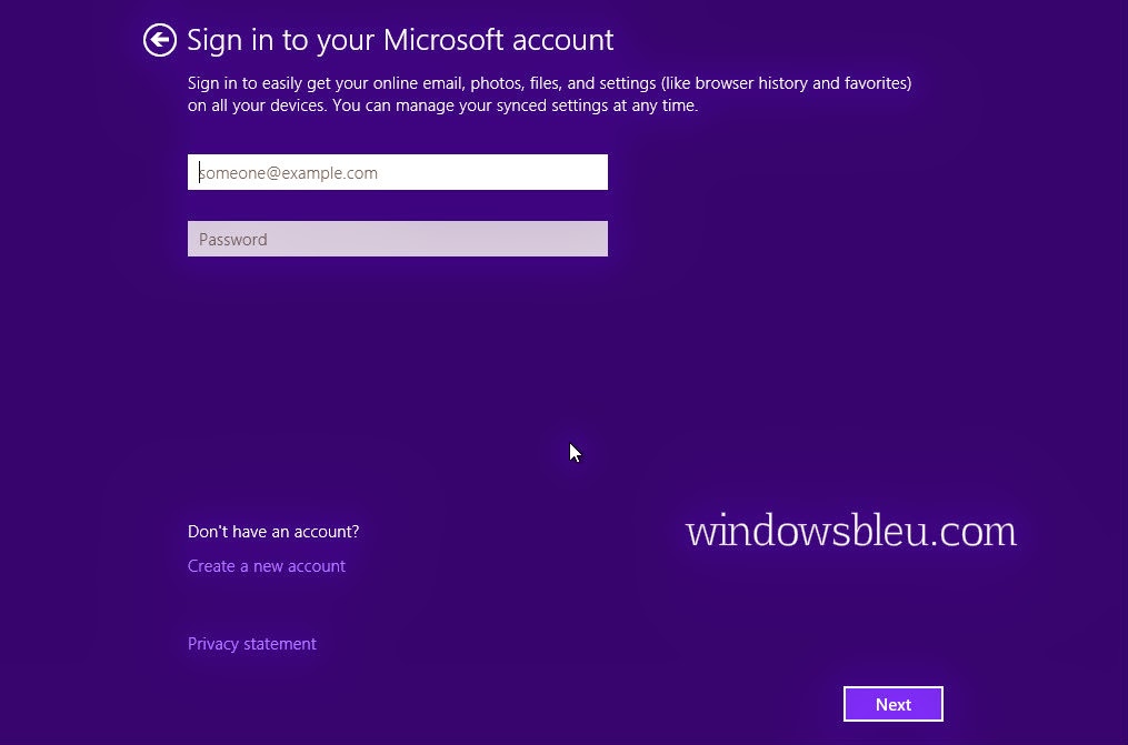 Sign in to your PC using a Microsoft account or local account. The Microsoft account option requires you to create or sign in with a Microsoft username and password. The local account option requires you to create a username and password to be used specifically for your personal account on the computer and to do that just click on"