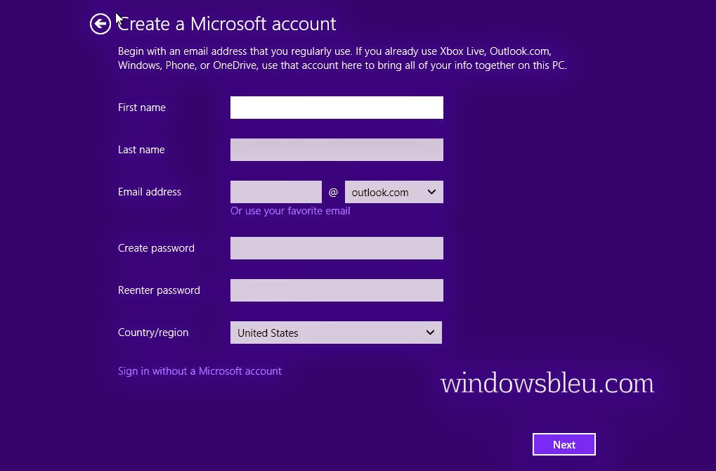 If you don't have Microsoft account create one from here or just "