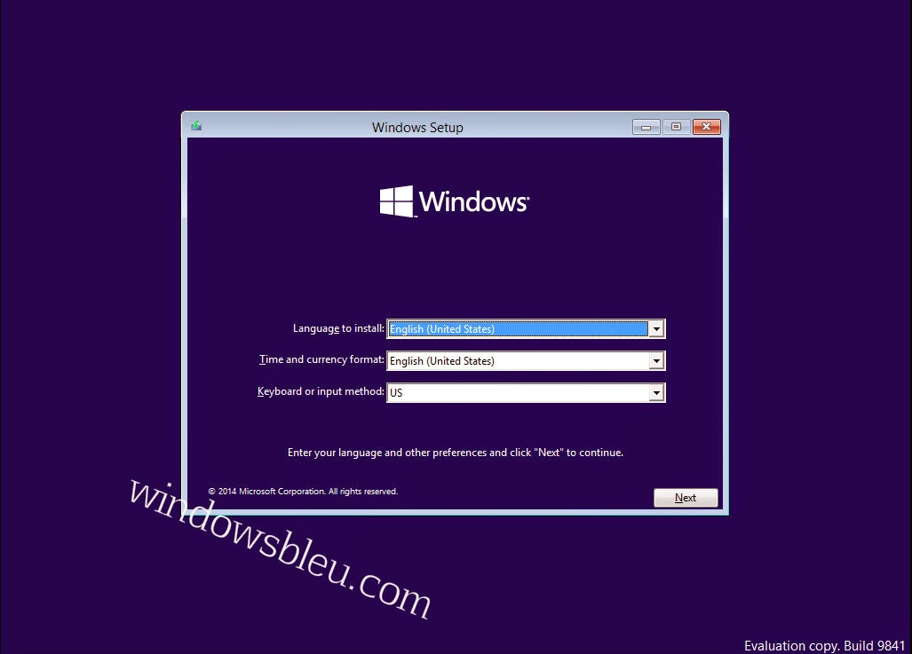 Install now" after the Windows 10 Technical Preview Setup Wizard appears on your screen then choose your language.