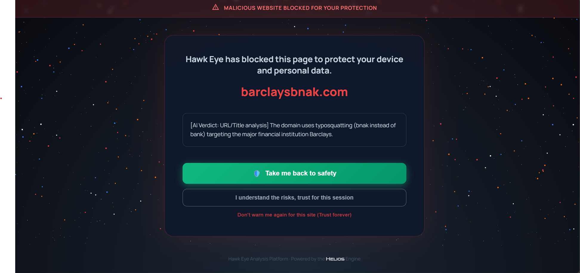 For websites not on the bloomlist, there is cloudflare database. The domain plus the tab title (e.g Barclays bank + barclays.vercel.app) will be forwarded to sitecheck.hea-p.com. No personally identifiable information is forwarded in addition to that, other than authentication token.