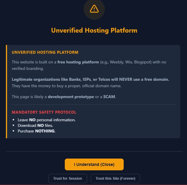 In level 3, this won’t be a measage/modal, but these websites will be automatically blocked. They are currently not analysed by AI, the best defence is to warn people that chasebankovskaya.pages.dev is never gonna be Chase