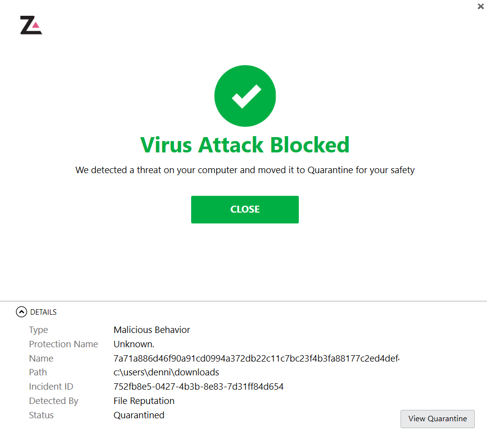 Same like Zone AlarmCheckpoint Harmony detect it through File Reputation