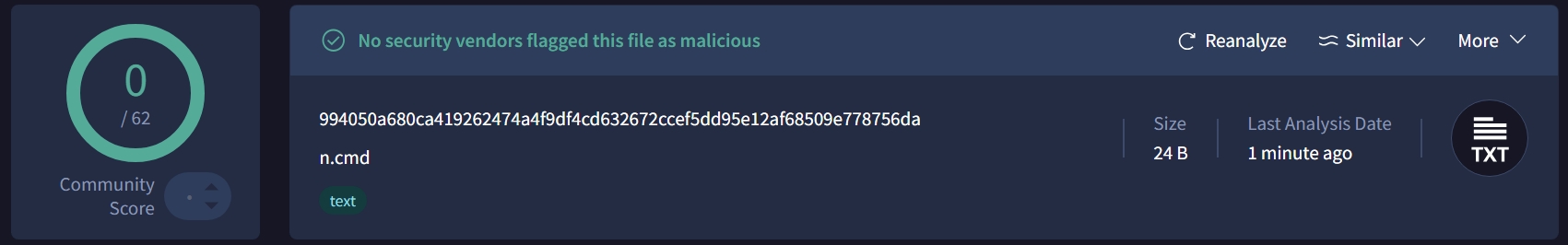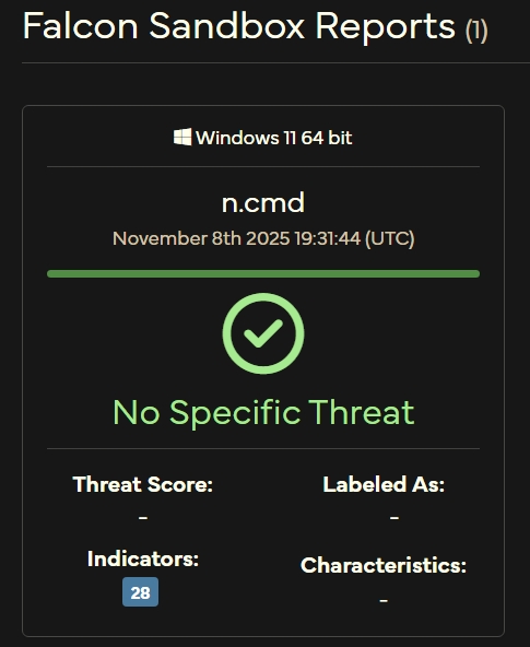 Visted the video page, copied, the command, saved as cmd file, uploaded to VT,HA, and K online scanner.