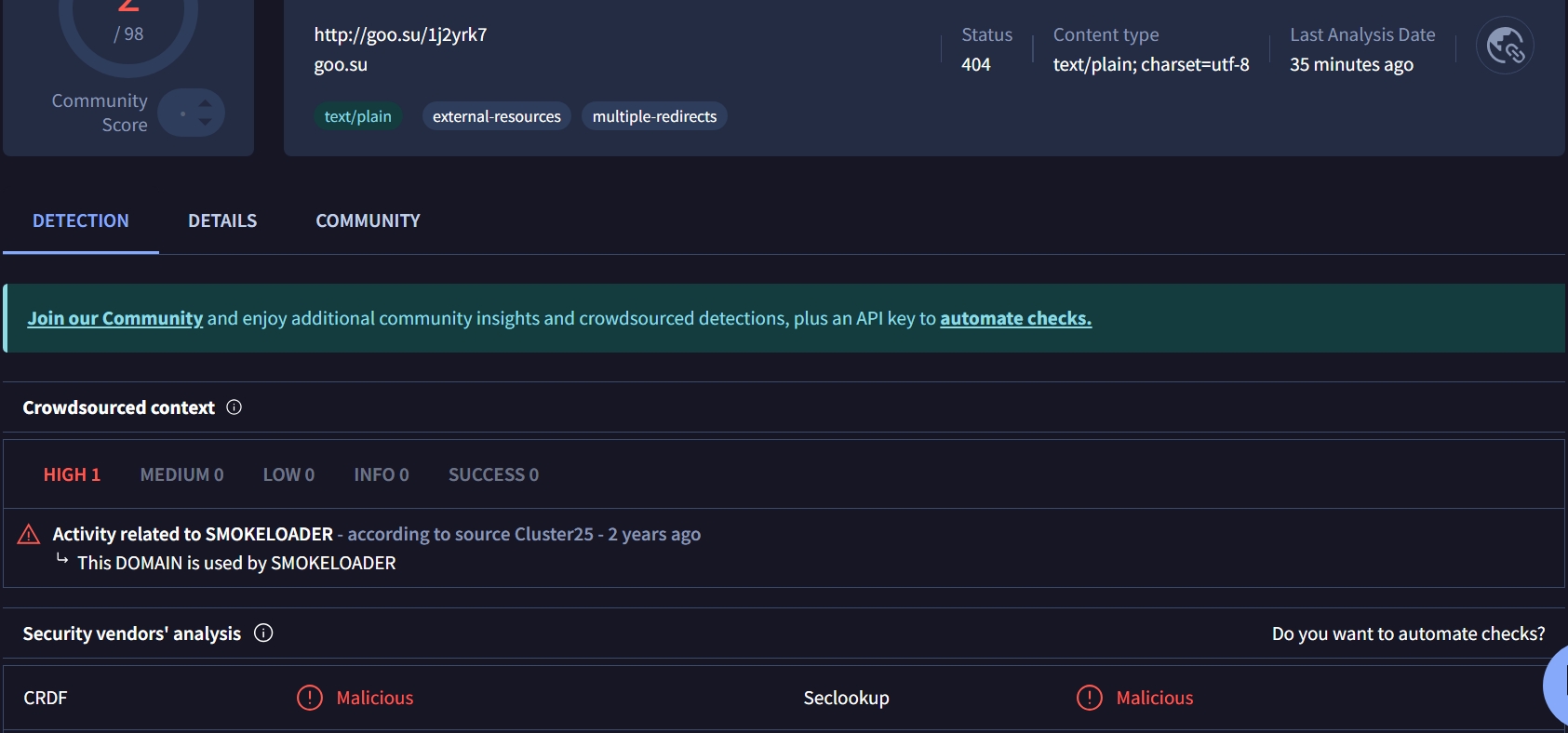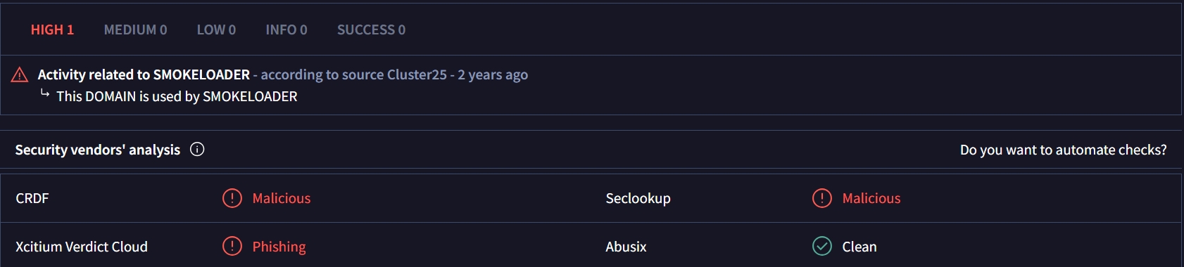 Xcitium is not showing for me.Xcitium just has joined the vendors detecting the malicious domain