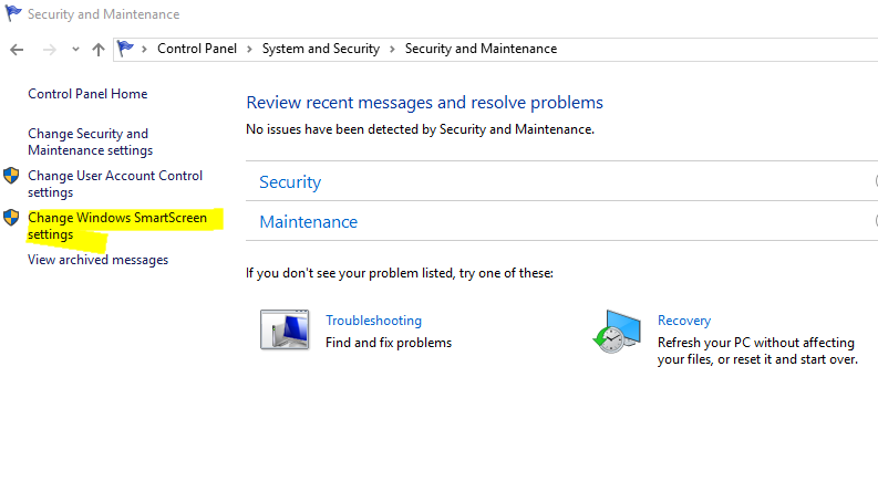 Then click on change windows smartscreen settings