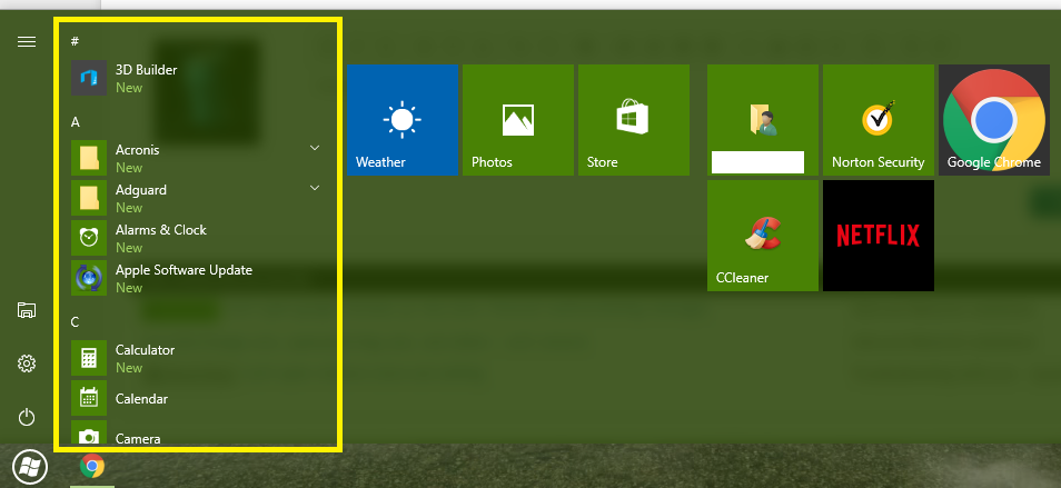 is there a way to remove the start menü list, so that there are only my apps that i have switched there?