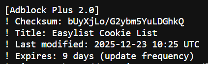 This is cookie list. Normal Easylist expires in 4 days. I don't know why as filters should be updated at least once every 24 hours.Easylist expires even in more time (9 days), however, uBO checks it for update every few hours