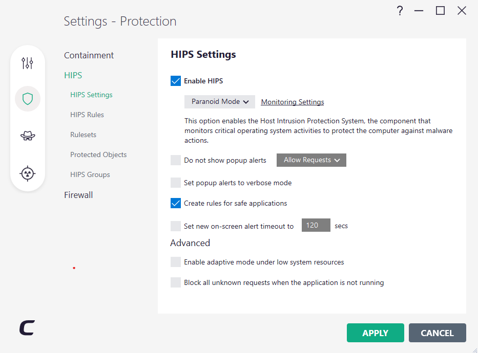 I then put HIPS in paranoid mode and rebooted.
